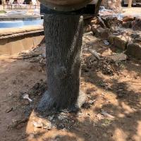 There are so many possibilities when it comes to supporting your water slides. We see them so often and thought it might be a great time to start showing you some options when it comes to adding your water slide to your next inground pool project. Blue Water Custom Pools sent these awesome photos in of a project they recently completed and the supports blew us away. 16″ sono-tube piers turned faux tree trunk supports.